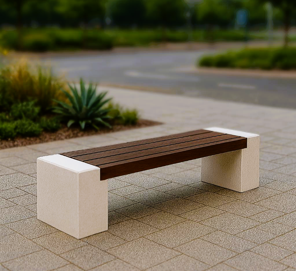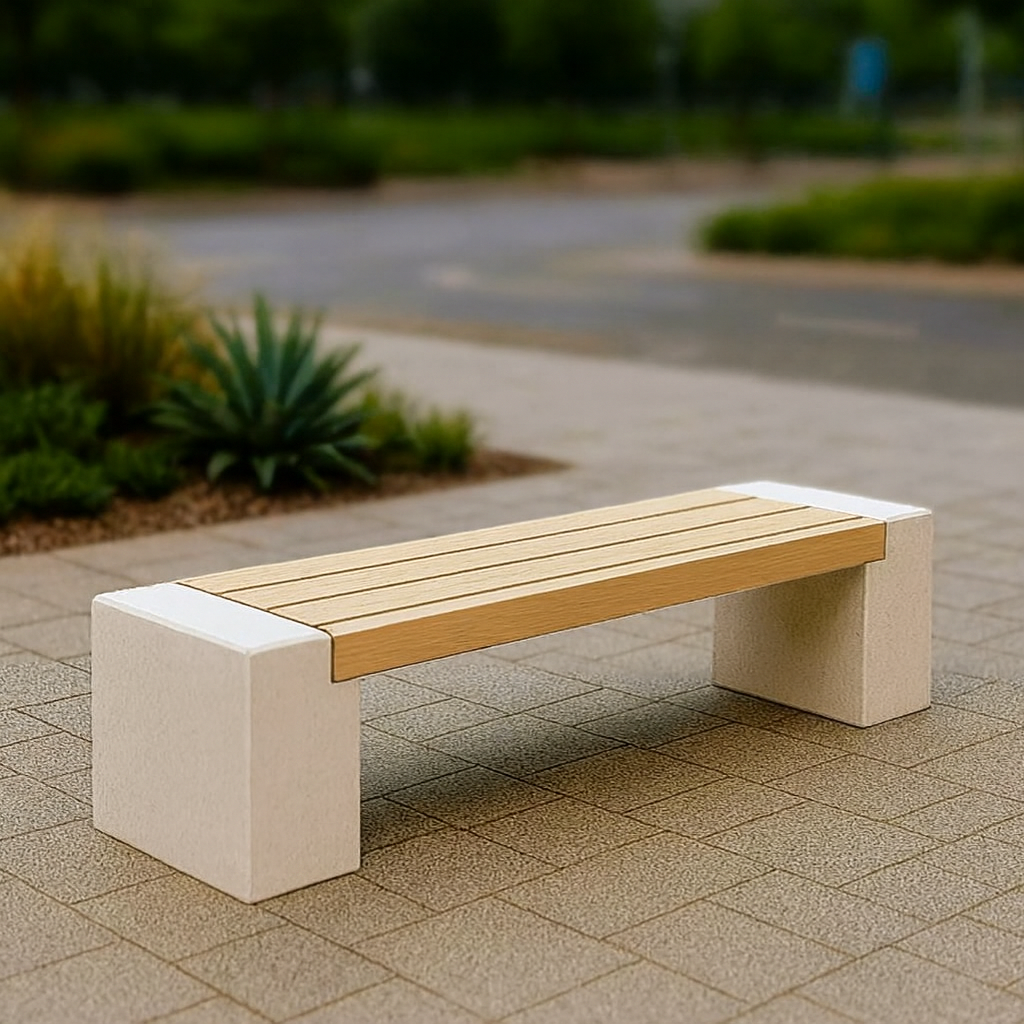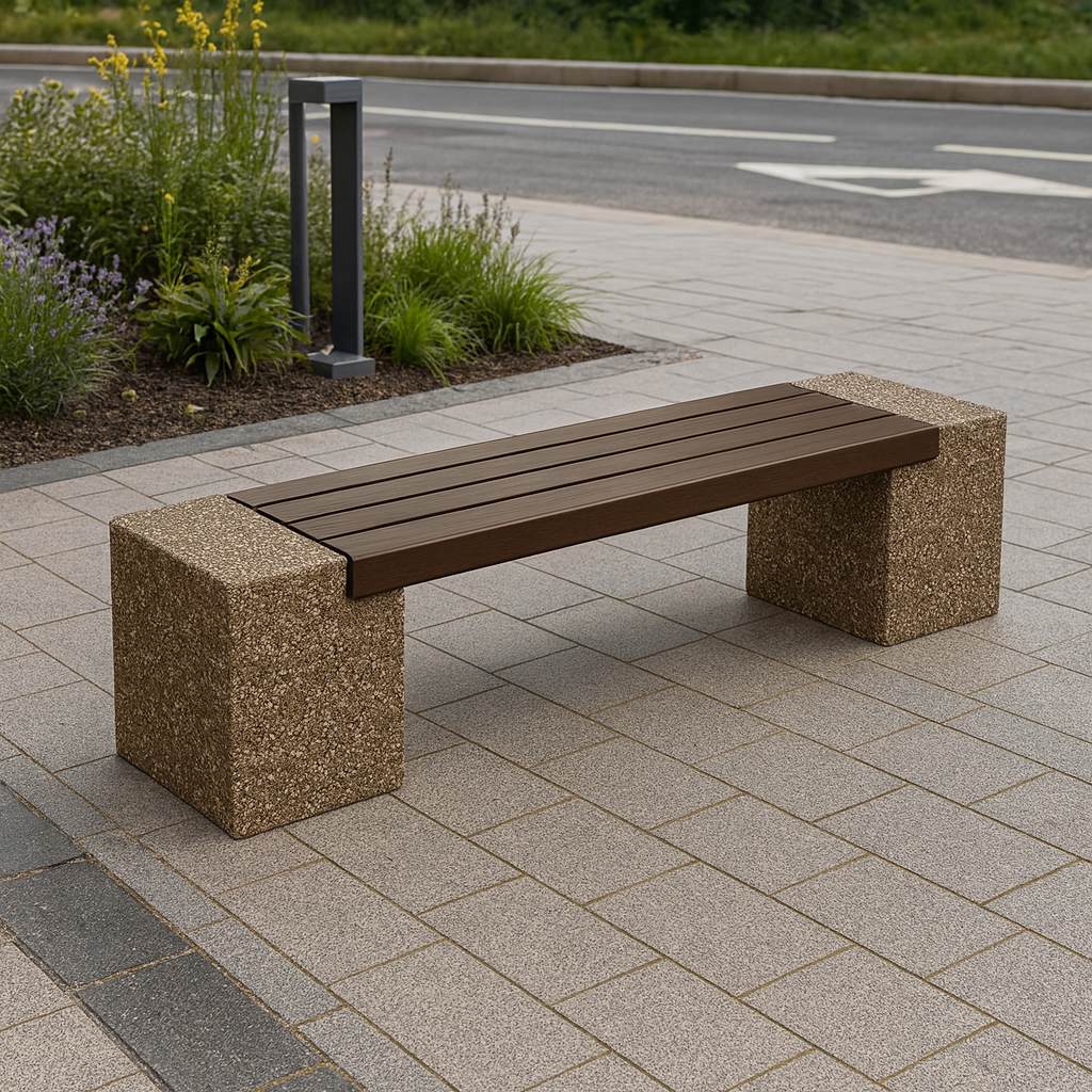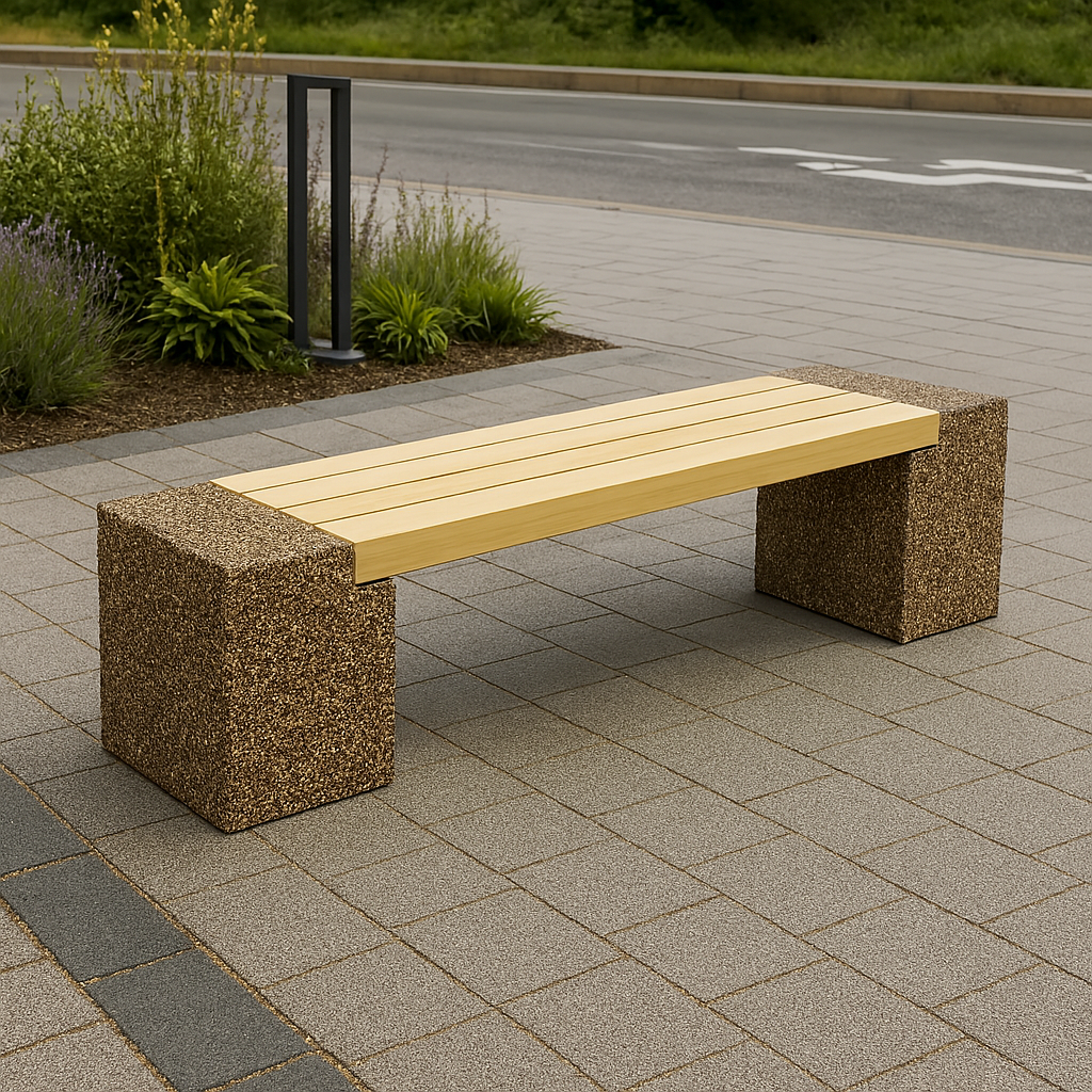 Banca stradala Naturstone din beton cu aspect de piatra naturala, sezut din lemn de stejar 150 cm 1.068,00 RON 0,00 RON